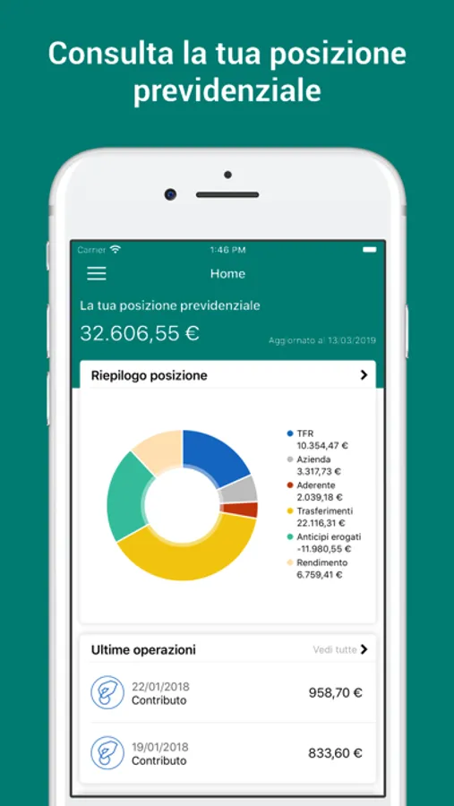 L'app permette di accedere all'area riservata per consultare la tua posizione contributiva.