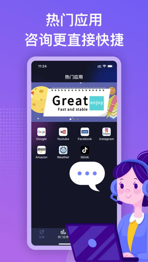 Great Fast VPN 是一个虚拟专用网络,旨在保护您的隐私和安全。只需要轻轻点击连接,即可安全匿名地上网。
