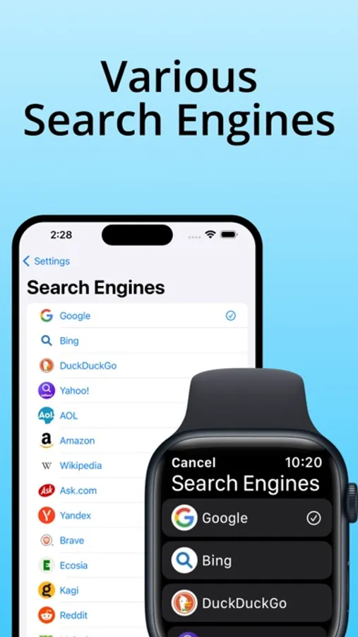 - Search with your keyword with 20+ search engines. The supported search engines are Google, Microsoft Bing, DuckDuckGo, Amazon, Wikipedia, Baidu, AOL, Ask.com, Yandex, Brave, Ecosia, Kagi, Reddit, Mojeek, Qwant, You.com, Presearch, Swisscows, GitHub, Naver, Yahoo! Japan, and Dictionary.com.