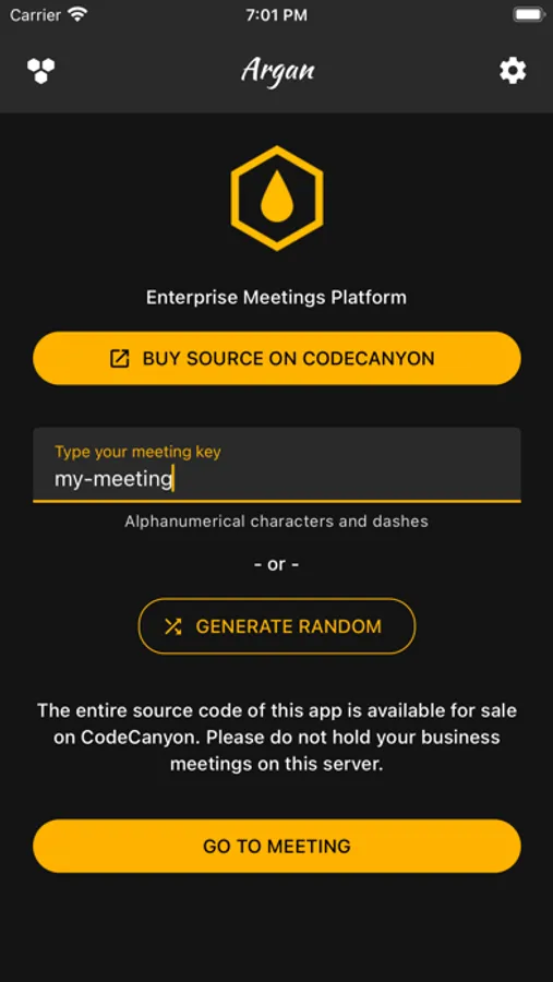 You can play around and host meetings on the Argan app itself, or you can buy the app source code and publish your own (rebranded) meetings app. You are also allowed to charge your users for usage, within the extended license.