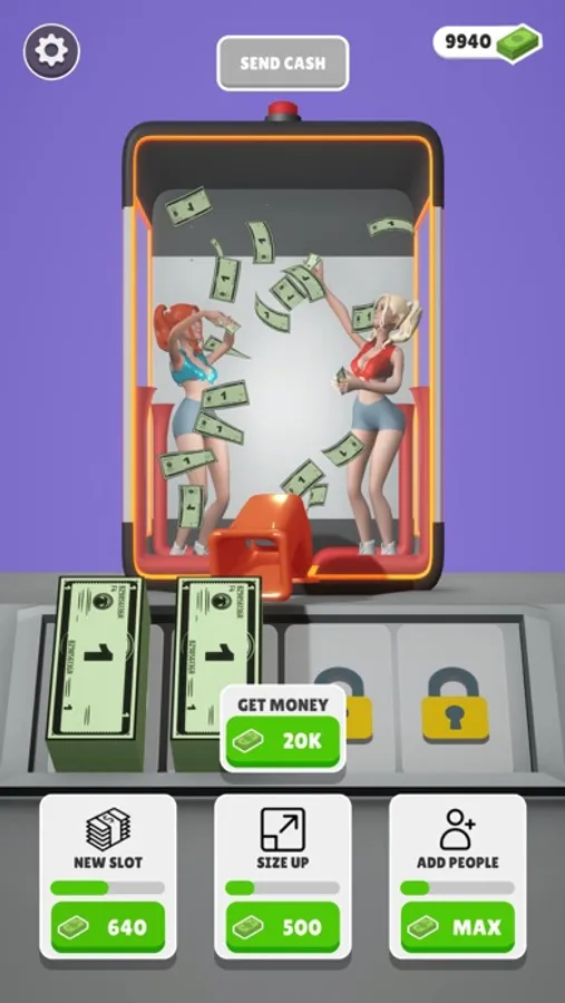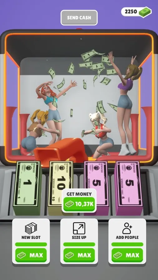 Unique and addictive mobile game where players take control of a money blowing machine and tap to grab as many bills as possible. The game features an idle mechanic, where the machine keeps blowing money bills even when the player is not tapping, allowing them to earn money while they are away.