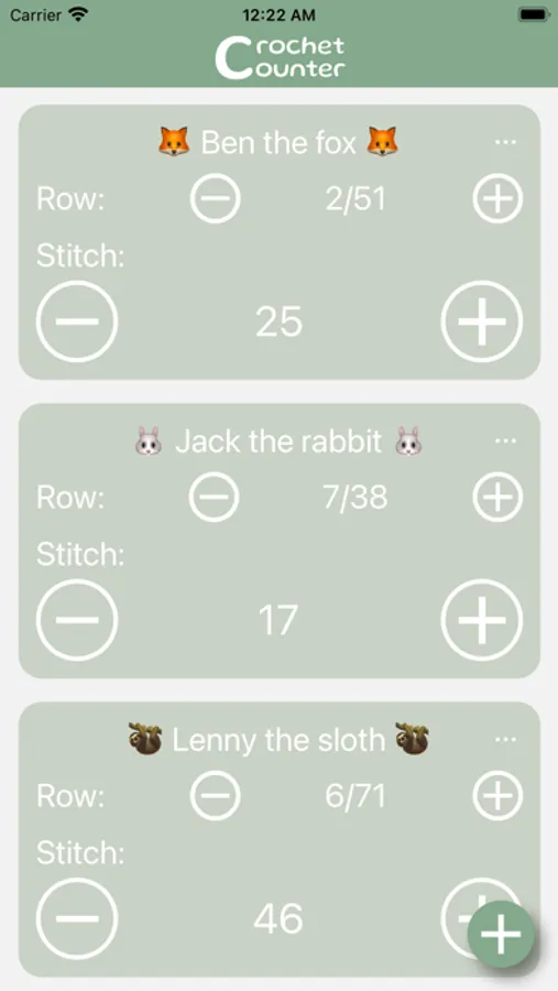 Each counter can be displayed separately on a new screen and it shows the project name and the number of stitches and rows completed.