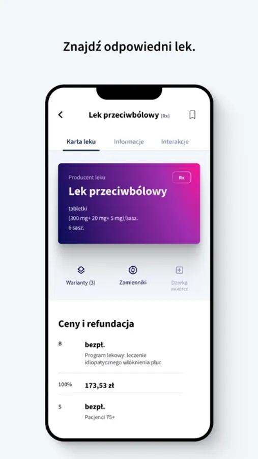 Wyszukiwarka leków, w której się odnajdziesz. Wyszukiwarka, z której sami chcieliśmy korzystać. Czytelne informacje na temat wszystkich leków, suplementów diety i substancji czynnych - zawsze pod ręką.