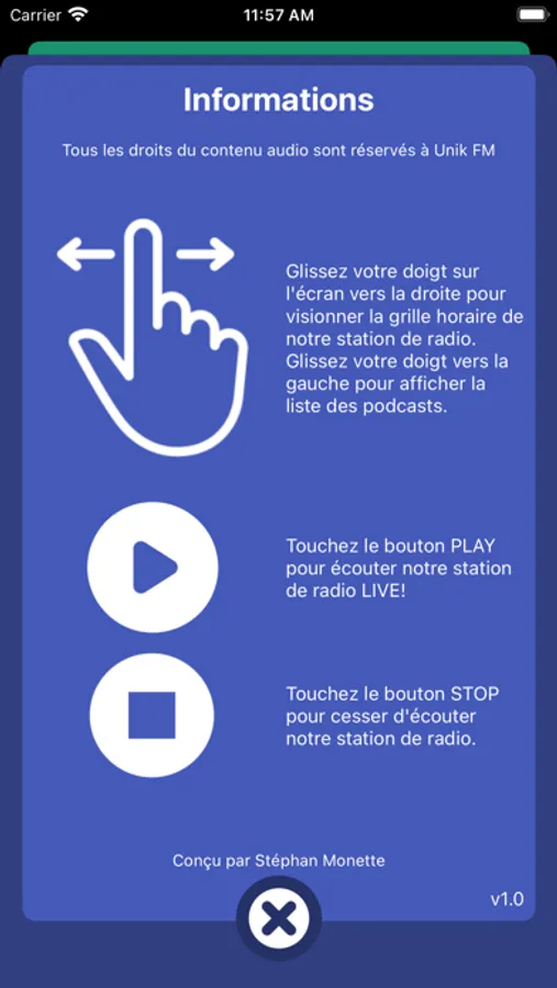 Notre application contient notre grille horaire et vous pouvez aussi écouter notre sélection de Podcast quand cela vous convient le mieux!