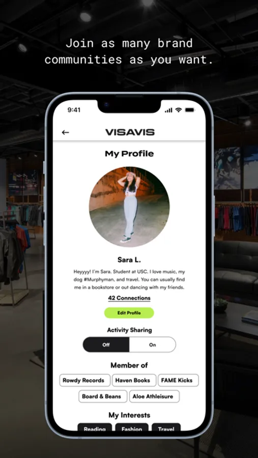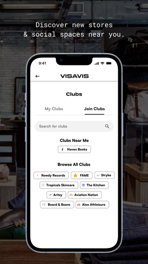 Visavis lets you become a member of your favorite brands' communities, and helps you meet new people in real life who share your interests.