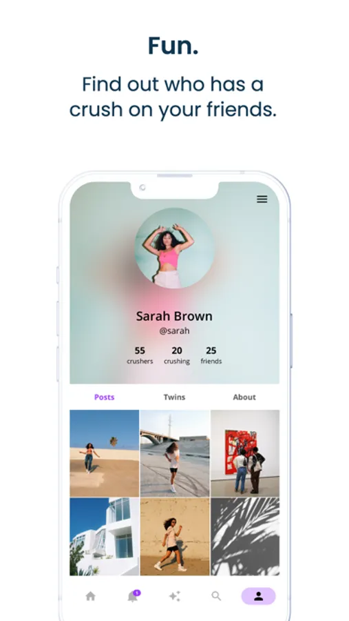 Send anonymous messages, find out if you're their Crush, and snoop on who's crushing on your friends. And if that wasn't enough, our exclusive "twins" system allows you to discover people who look like you based on your facial features.