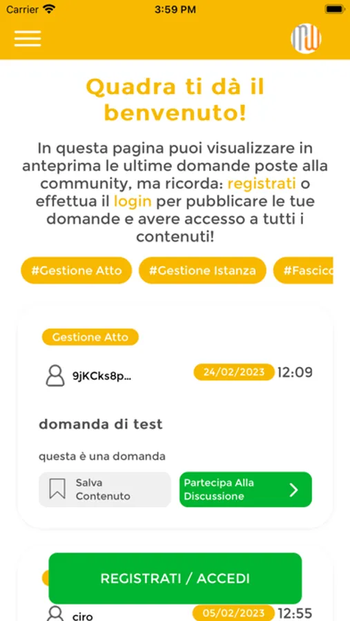 Quadra oltre ad essere un'app, è una vera e propria community che offre la possibilità all'utente di fare domande, rispondere ed interagire alle domande degli altri utenti.