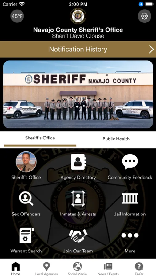 The Navajo County Sheriff’s Office AZ mobile application is an interactive app developed to help improve communication with area residents. The Navajo County Sheriff App allows residents to connect with the Navajo County Sheriff’s Office by reporting crimes, submitting tips, and other interactive features, as well as providing the community the latest public safety news and information.