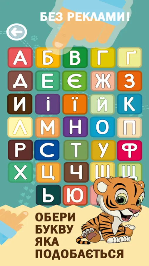 Підспівуючи пісеньки про звірят малюк граючи вивчає букви. Чотири розвиваючі гри