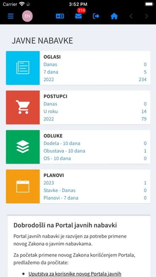 Portal JN je zvanična mobilna aplikacija Kancelarije za javne nabavke dostupna na iOS uređajima i omogućava korisnicima pristup sistemu elektronskih nabavki Republike Srbije.