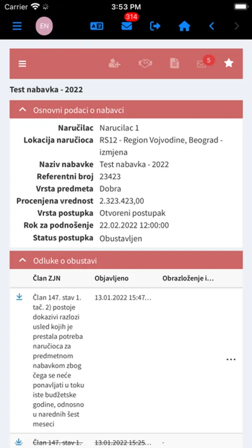 Naručioci mogu da prate postupak javnog otvaranja ponuda i budu obavešteni o automatskom formiranju i objavi zapisnika o javnom otvaranju ponuda i pregledati otvorene ponude.