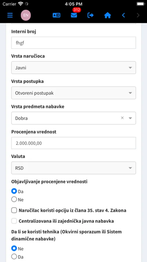 Aplikacija je namenjena ponuđačima i naručiocima u sistemu javne nabavke i naslanja se na nacionalni Portal javnih nabavki https://jnportal.ujn.gov.rs.