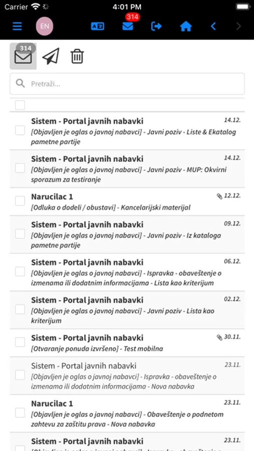 Naručioci će promptno biti obavešteni o podnetom zahtevu za zaštitu prava, zahtevu za uvid u dokumentaciju u postupku i druge ključne događaje putem sistema notifikacija.