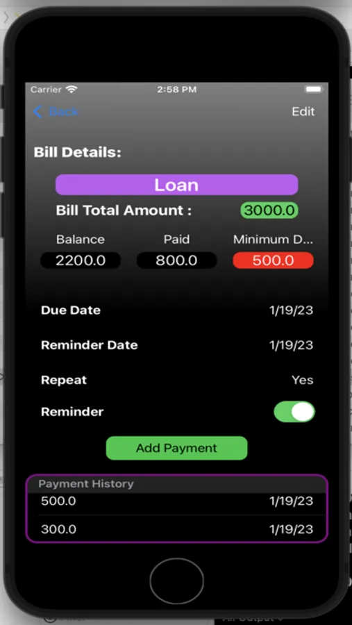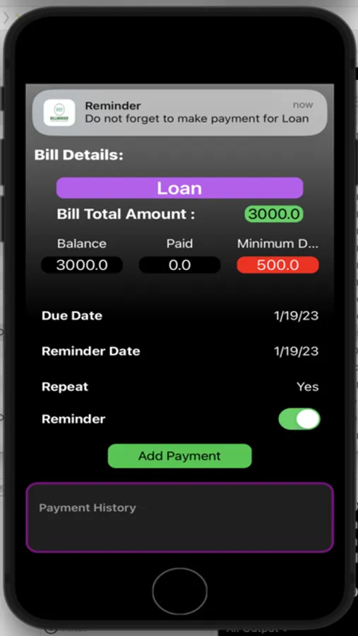 - It reminds you on set date and allows you to record payments made and the date of payment