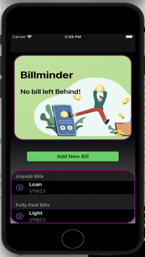 - When all payments are made and the amount owed on your bill is zero, the app marks you bill fully paid and moves it to the fully paid section