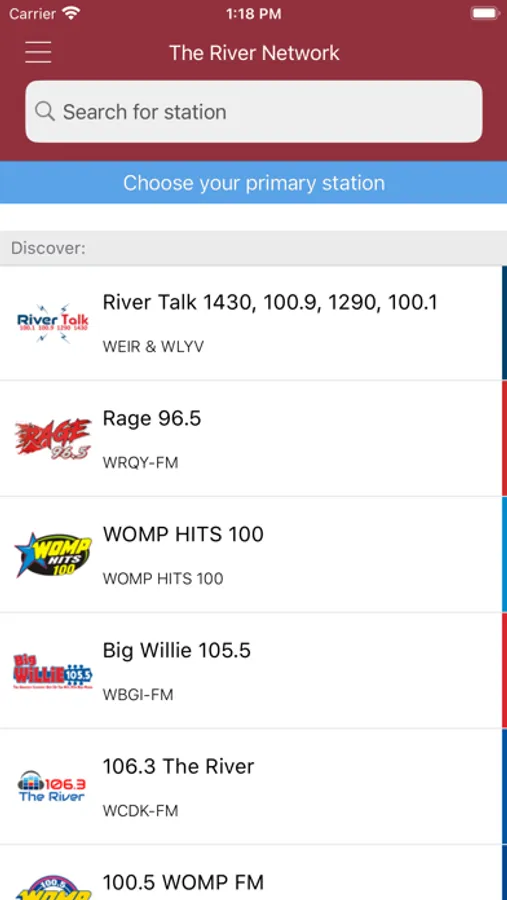 Listen to 100.5 WOMP FM, 106.3 The River(WCDK), Big Willie 105.5(WBGI), Rage 96.5(WRQY), River Talk 1430, 100.9, 1290, 100.1(WEIR) worldwide on your iPhone and iPod touch.