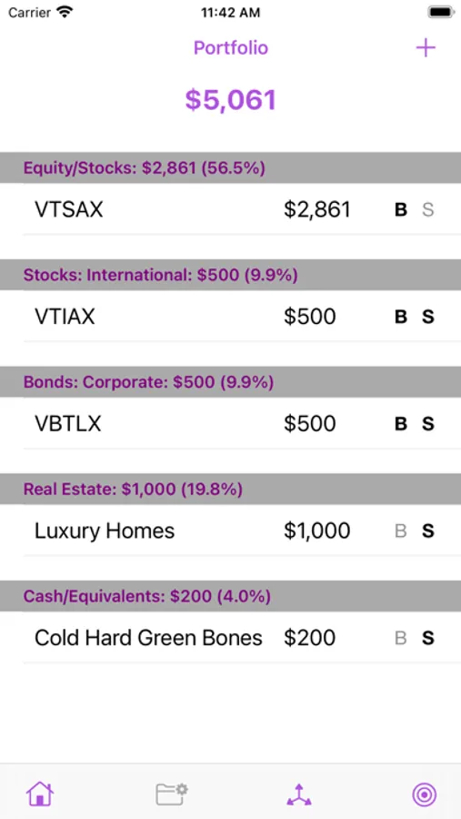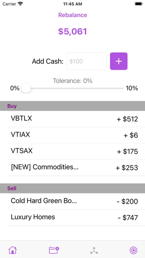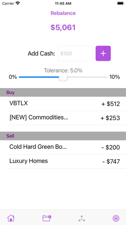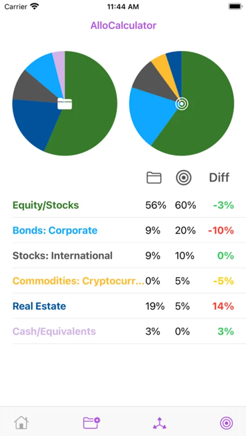 No more manual calculations or spreadsheets. Simply set your target allocation, update the amounts in your portfolio, and let AlloCalculator tell you what you need to change.