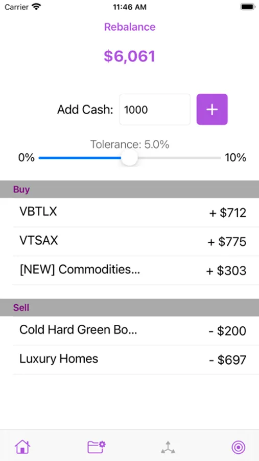 Financial calculator that quickly calculates how much of each asset to buy or sell.