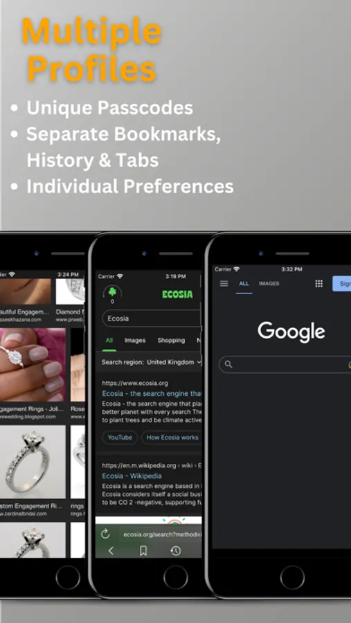 - Decoy Code: Secondary Passcode accesses a unique web browser with separate bookmarks, history & tabs.
