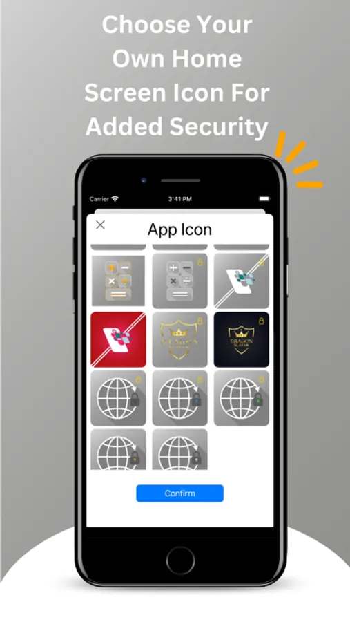 - Custom App Icon: Change the app's icon, so it's not easily recognizable on your home screen.