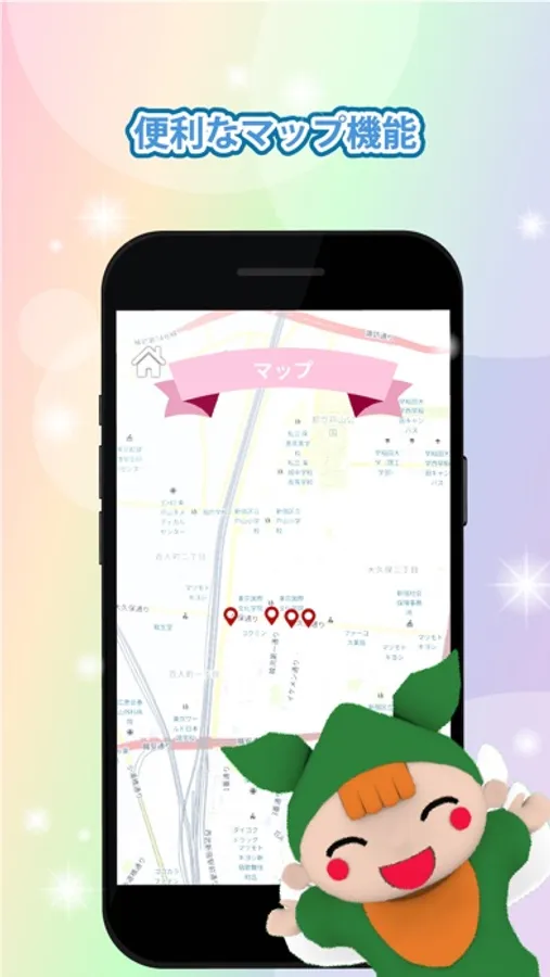 ・商店街の各所で表示されるBOXでアイテムを獲得して、天使に与えて育てよう!