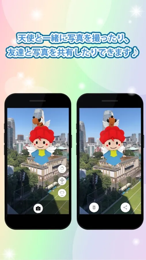 ・天使と一緒に写真を取ったり、写真をシェアできます!