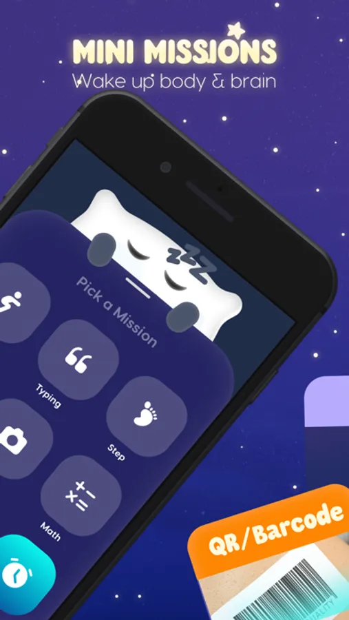 * Choose a way to stop the alarm: shake your device or solve a math problem.