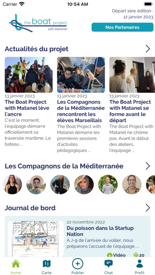 Grâce à l'application, découvrez les actualités du Boat Project, suivez en temps réel les aventures des Compagnons de la Méditerranée et communiquez directement avec eux.