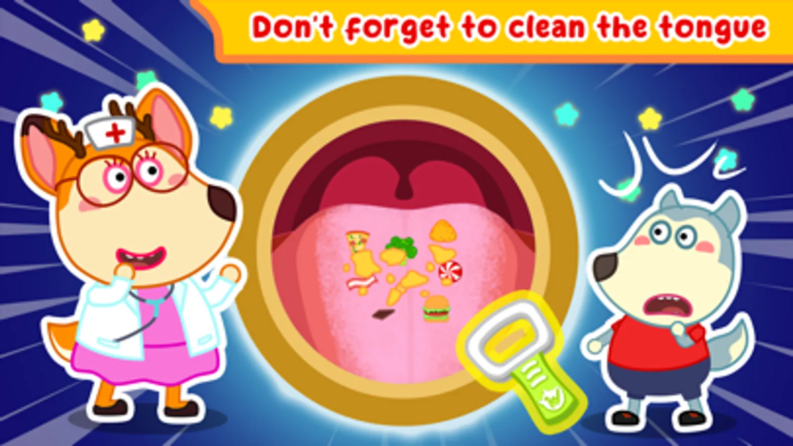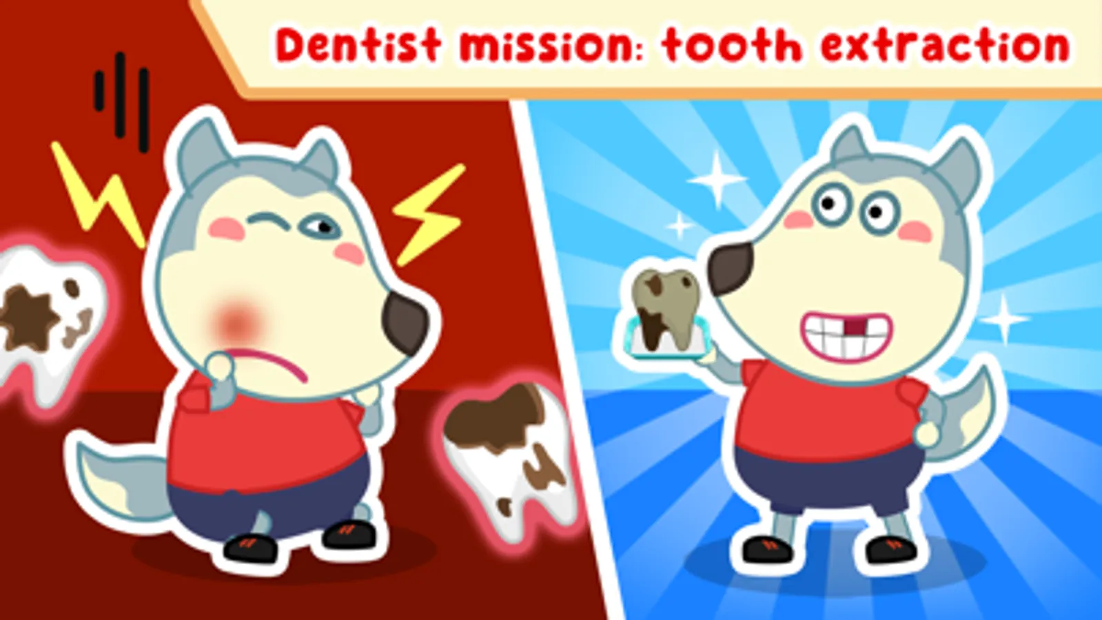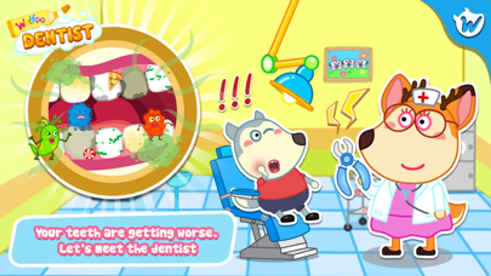 Kid’s dental care, family dental care is very important. Let's show kids how to clean their teeth in the right way, wear braces on their teeth, and take care of their teeth every day as dentist's advice. Come with Wolfoo to visit dentist’s room at Wolfoo kindergarten, where the doctor dentist checks your teeth and takes care of them. This tooth game help Wolfoo and Lucy check their teeth well every day before go to Wolfoo preschool. We all learn about dental care at Wolfoo kindergarten, but in this Wolfoo dentist, dental care game, we meet doctor dentist, defeat bacteria by mouth watering, remove decayed tooth, try tooth extraction, whiten teeth, and clean tongue, mouth, teeth, gum like in a dental adventure. Just in this Wolfoo dental care free dentist game, there are so many mini games to try. Let's download this family dental care game and enjoy with Wolfoo and Lucy.