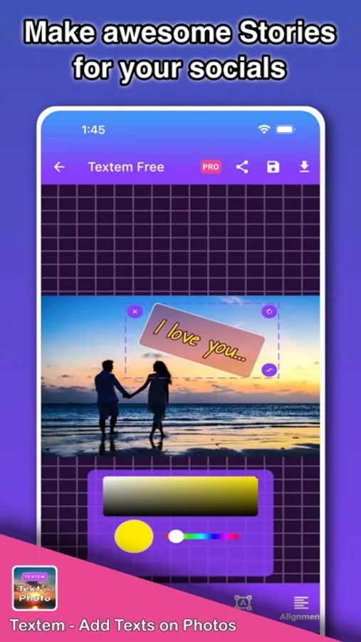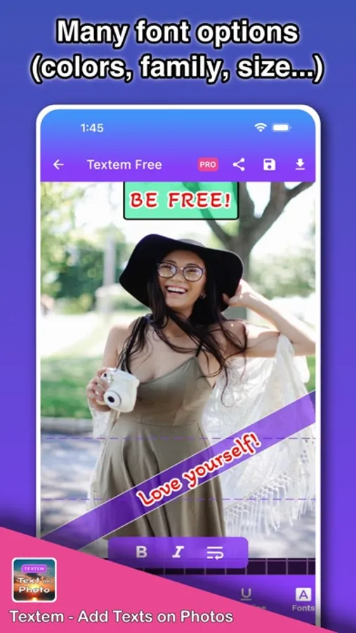 Say everything you want with Texts on Photos. Add your favorite quotes to your Images with easy.