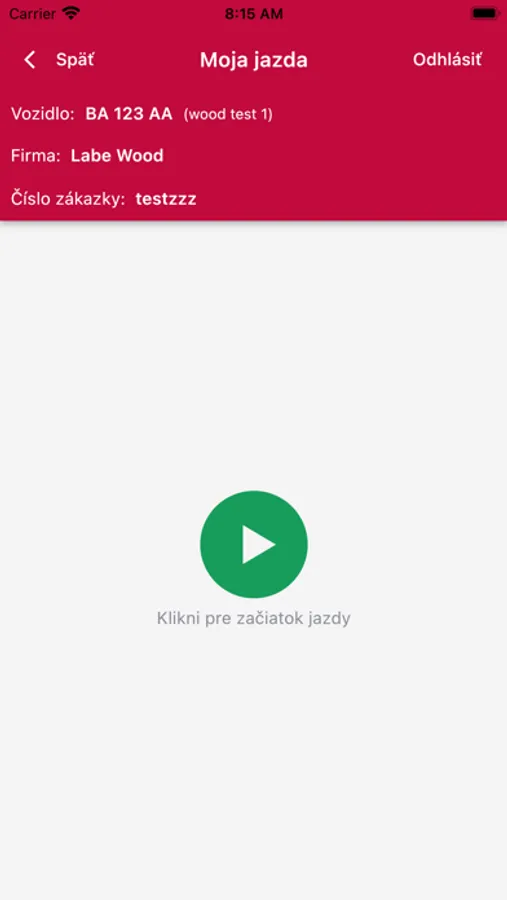 - Prepravca si vyberie ečv vozidla, pílu na ktorú vezie drevo a spustí tracking