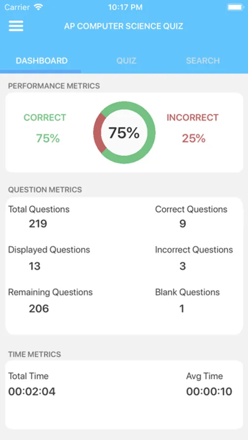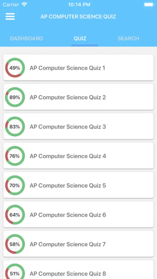 This app is designed to help applicants take a deeper understanding of the relevant concepts for the AP(Advanced Placement) Computer Science. It measures your progress in a clear and intelligent manner to motivate you to learn quickly.