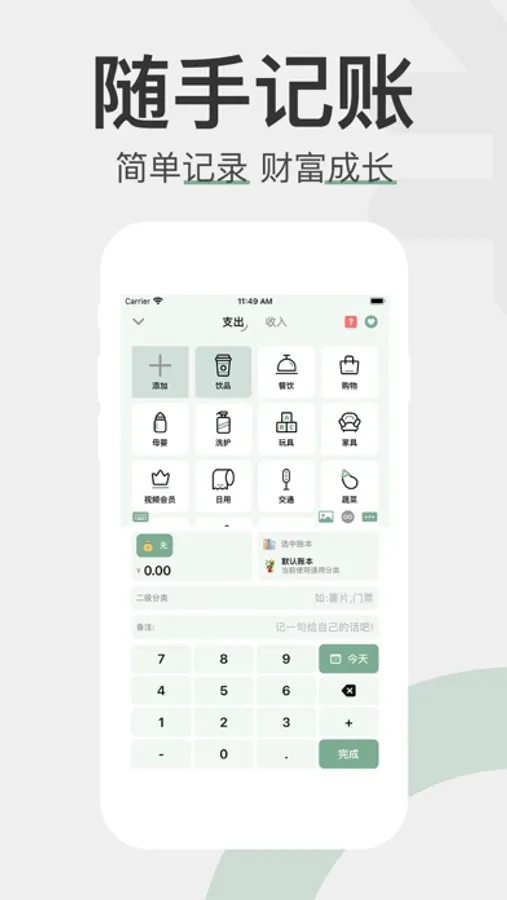 该应用设计简约,无广告、无社区、无理财推荐,只专注于记录账目。