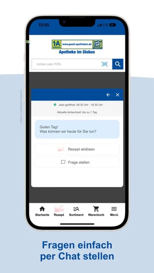 Wir bieten Ihnen über die App unser gesamtes Sortiment. Nicht sofort verfügbare Produkte bestellen wir für Sie und machen Sie in der Regel bis zum nächsten Werktag abholbereit. Gerne liefern wir Ihnen Ihre Bestellung per Botendienst direkt nach Hause.