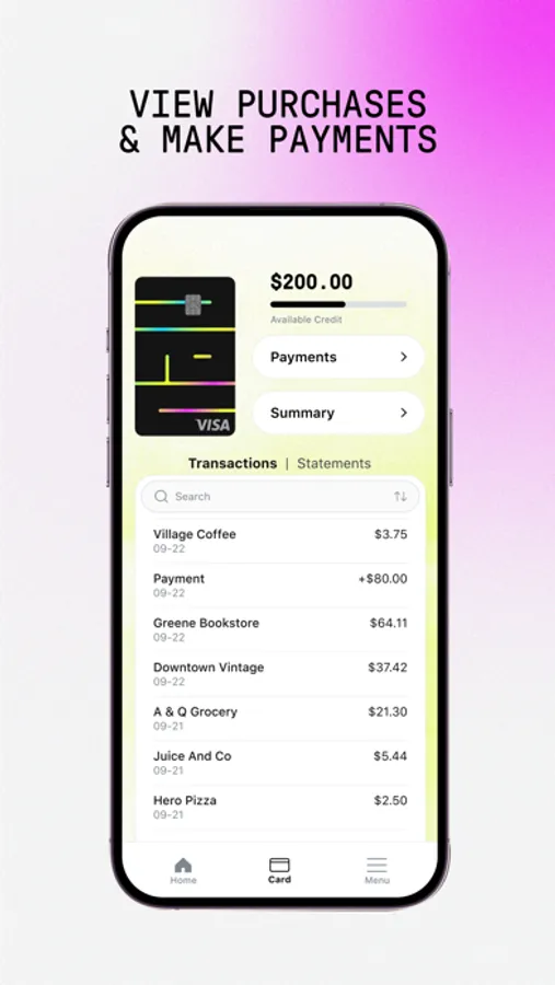 The app is simple and easy to use. Even if it’s your first credit card, we walk you through the process and help you understand any confusing terminology. Inside the app you can: apply for the card, select your subscription plan, select your card design, link your bank account, set up autopay, view your card details, view your transactions, view your card summary and statement, freeze your card if you lose it, unfreeze your card if you find it, order a new card if need be, and contact customer support. We are also building new features and perks as we grow, so watch for exciting updates!