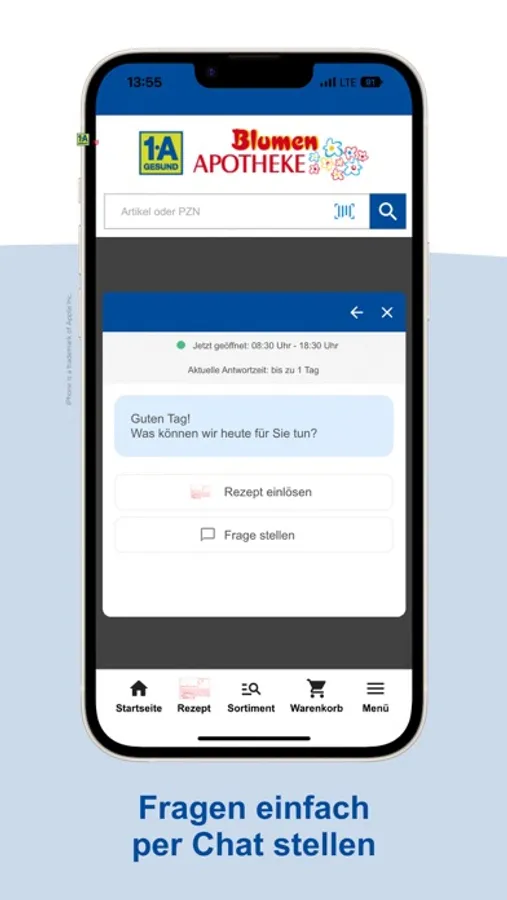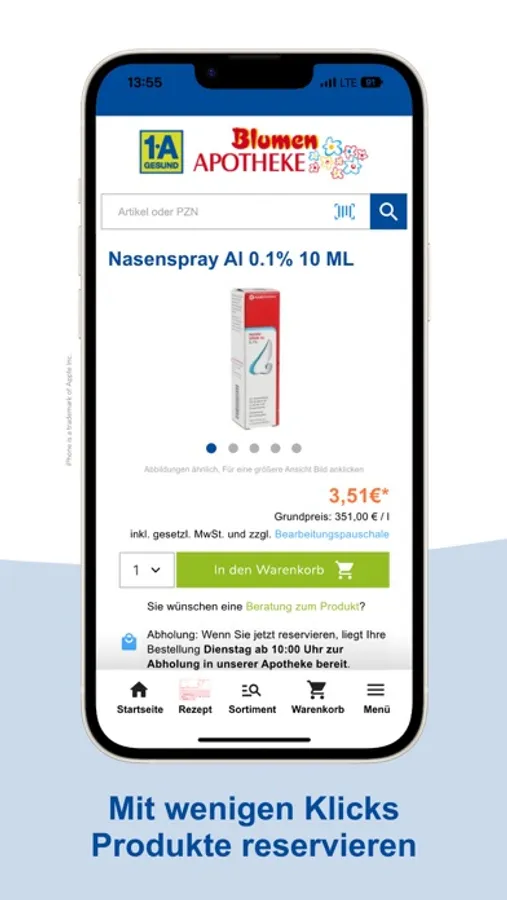 Bitte beachten Sie, dass wir bei apothekenpflichtigen Produkten zu einer pharmazeutischen Beratung verpflichtet sind. Die Beratung findet entweder bei der Abholung bei uns in der Apotheke, bei der Übergabe bei Ihnen zu Hause oder telefonisch statt.