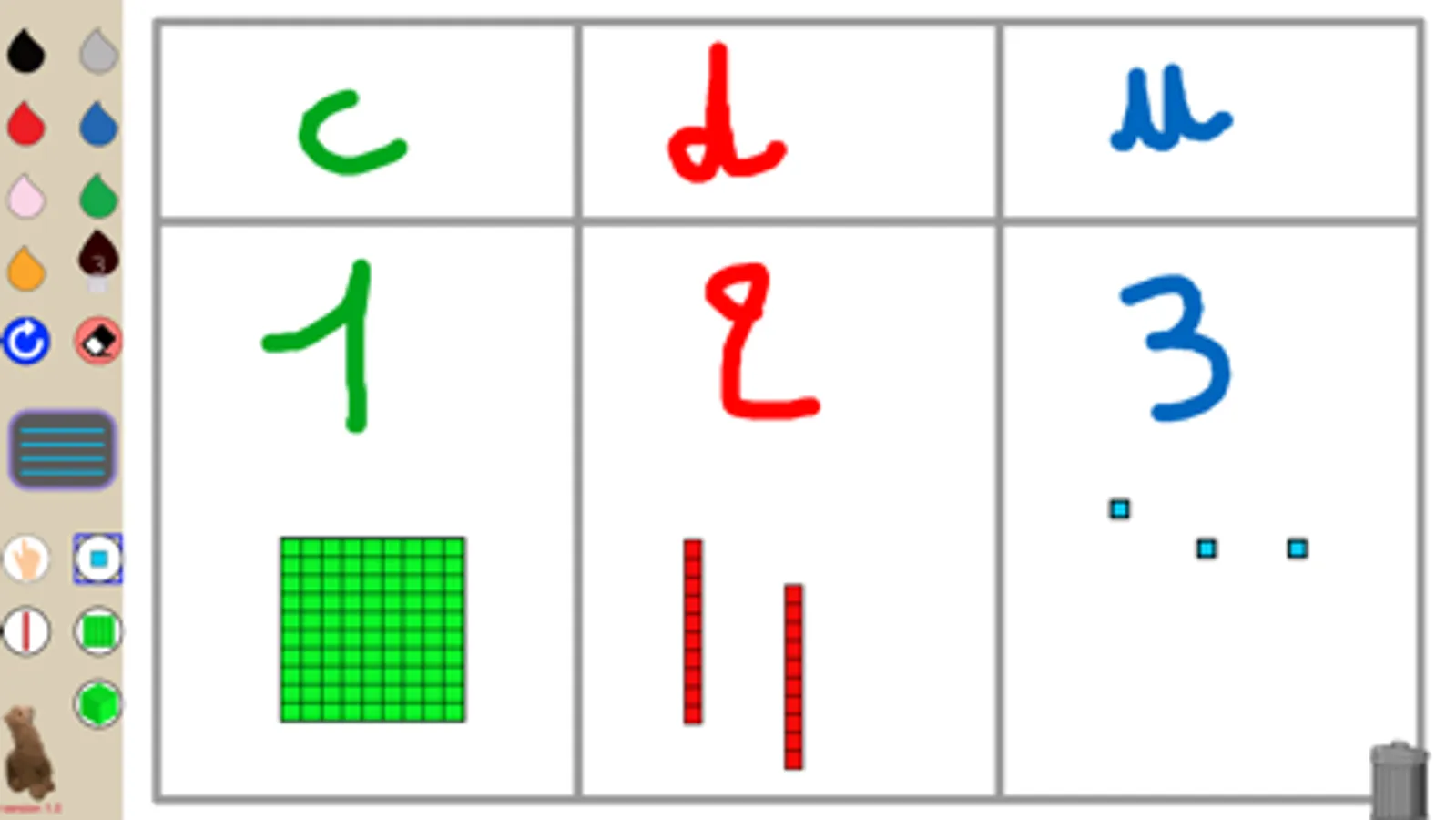 - des tampons (unité, dizaine, centaine, millier).
