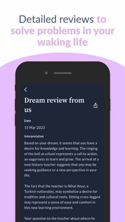 + Our AI translates the hidden meanings in your dreams + Provides your insights for personal growth and problem-solving + Receive free dream interpretations every month with our free plan