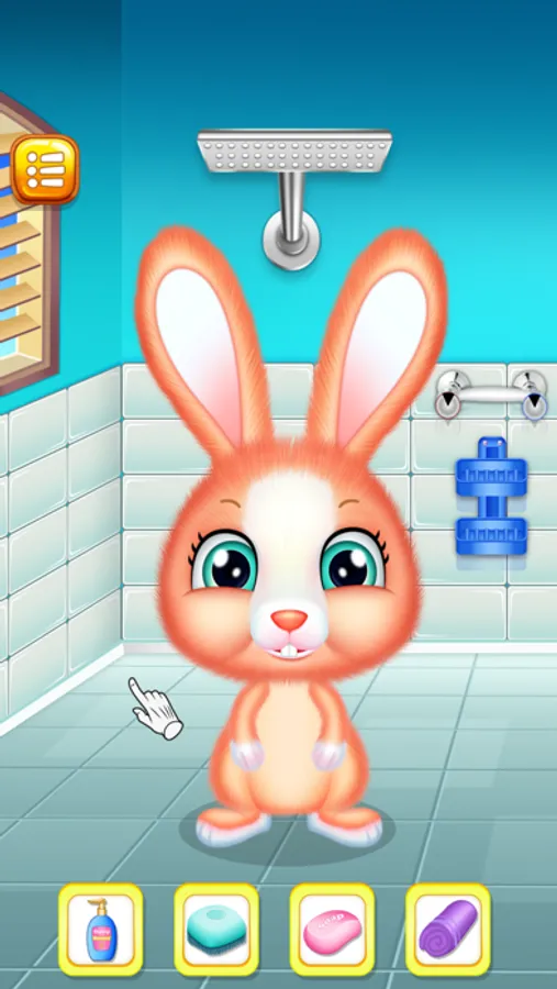 Bath - Clean the dirt and wash them properly. Apply shampoo, soap, shower and towel for bubble bath for cute bunny and let them enjoy in water.