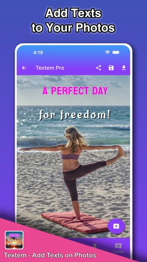 Say everything you want with Texts on Photos. Add your favorite quotes to your Images with easy. This is the PRO VERSION.