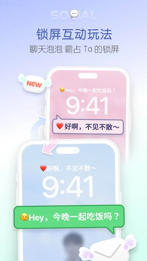 -不用打开手机解锁,在锁屏状态就可以收到对方发来的信息。随时随地传送爱!在泡泡锁屏端内添加好友,锁屏就是你们的聊天框