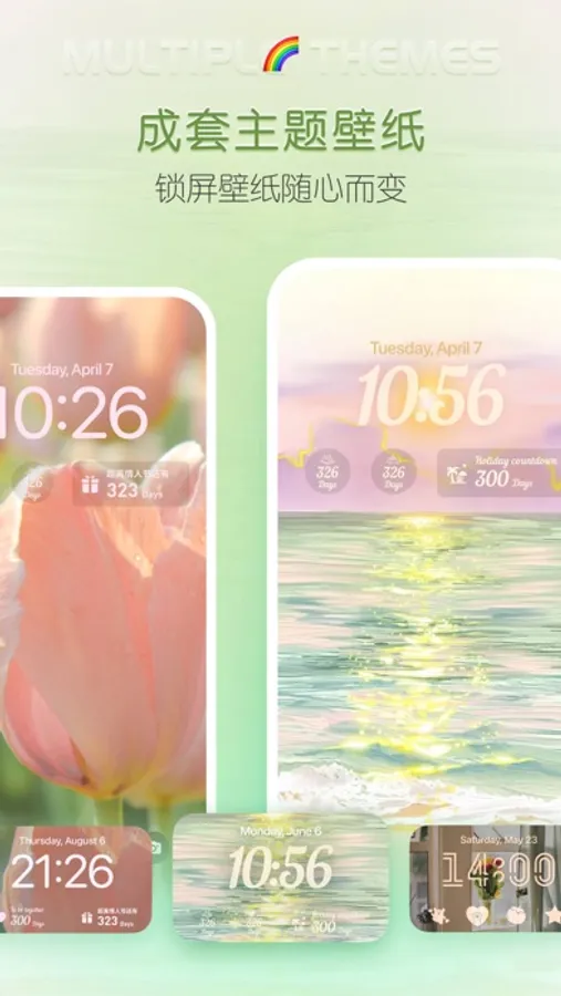 锁屏中的小组件和壁纸是配套的,也是我们精心挑选设计与搭配的,一键保存就可以轻松拥有我们的原创精美主题。