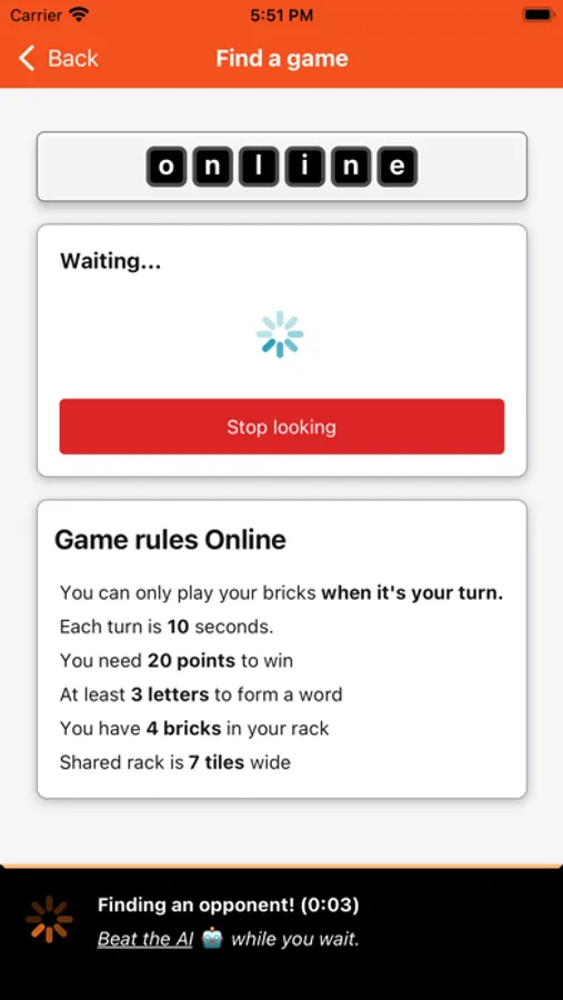 A realtime word game where you need to form words using your bricks faster than your opponent!