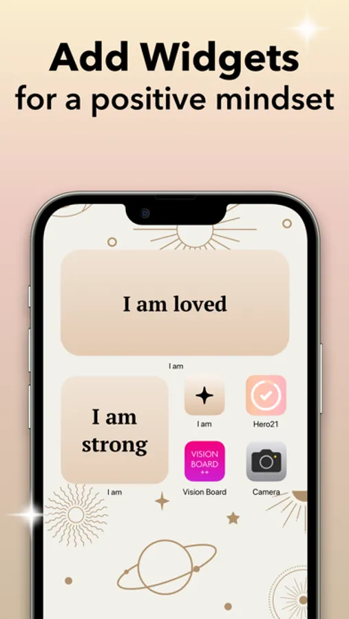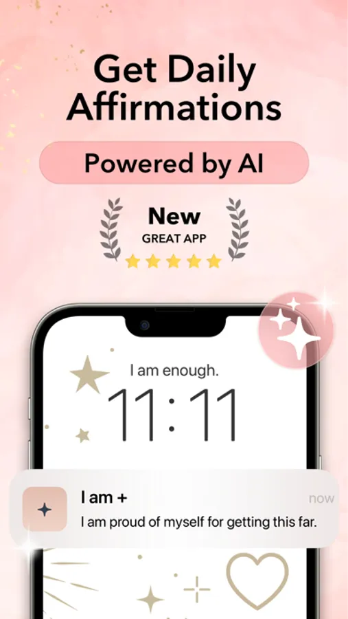 I am + helps you rewire your brain, changing negative thought patterns to positive ones, and making you feel better. Enter any wish, like "I want to be more confident," and the app generates personalized affirmations tailored to your specific situation.