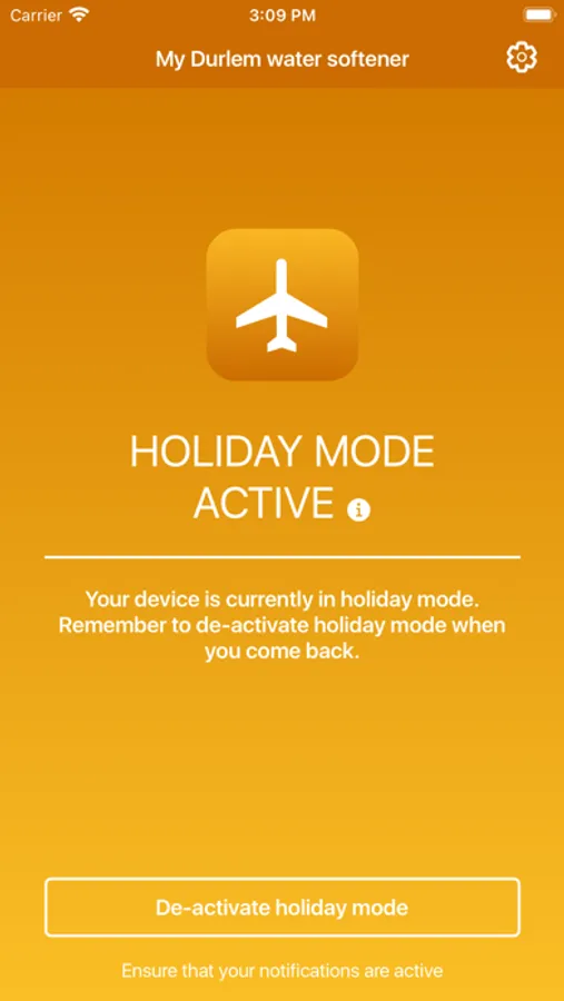 activate holiday mode: this mode allows the watersoftener to be shut down for a certain period