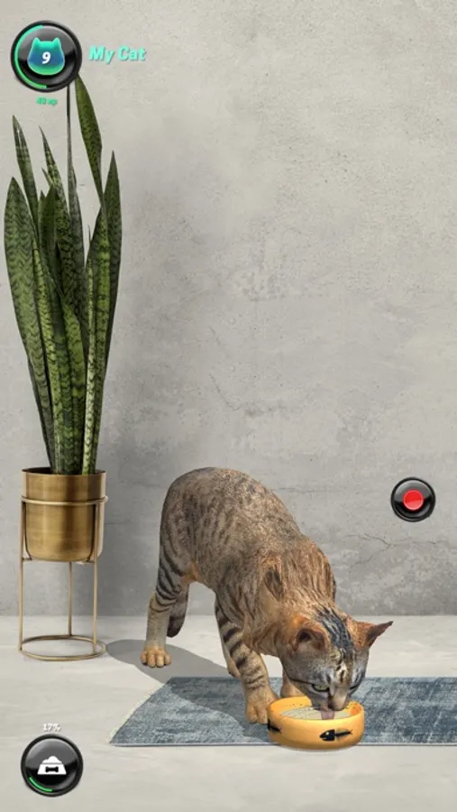 Upon opening the app, you can choose from a variety of AR experiences. For example, you could select the "food button" option and give a milk, water or cat food in real time to your cat. The “toilet button” give you an option to choose between many toilet designs. Your virtual pet loves to play with the scratching post, just press the "fun button".