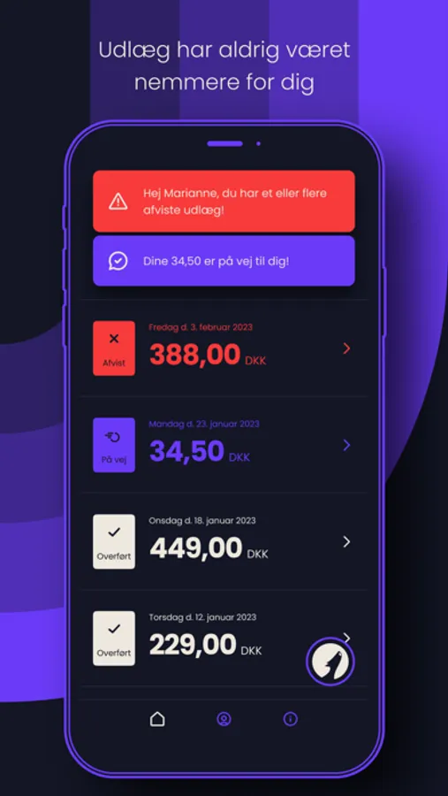 Læg ud på vegne af virksomheden med dit foretrukne betalingsmiddel, tag et billede af kvitteringen eller upload den i appen