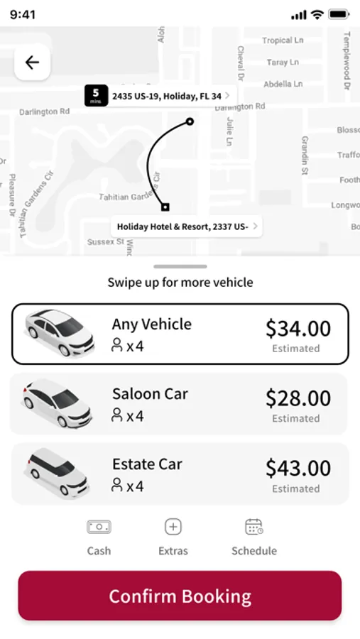 You can place the booking directly on our map, and see how many available cars there are nearby.