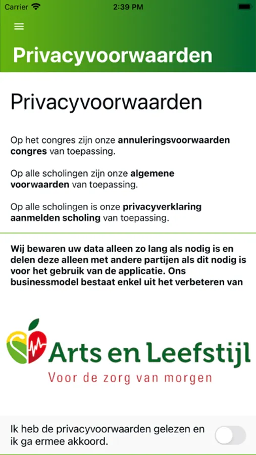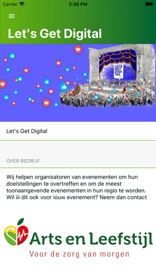 Toekomstbestendige zorg: Leefstijl & Duurzaamheid Leefstijl bespreekbaar maken en leefstijlgeneeskunde toepassen is cruciaal om zorg toegankelijk en mensen gezond te houden. Leefstijl draagt bij aan duurzaamheid. Dit congres helpt zorgprofessionals in de 1e en 2e lijn en Artsen M&G zoals Bedrijfs- & Verzekeringsartsen leefstijlgeneeskunde en het leefstijlgesprek toe te passen in de praktijk. Ook in een kort consult. Gerenommeerde sprekers helpen je om het geleerde meteen in je eigen praktijk of werkomgeving toe te passen. 13 tot en met 17 maart: de Arts en Leefstijl Week: 'Leefstijl Werkt!' Een week lang, ma-do van 19.30 - 22.00 uur en vrijdag van 9.15 - 13.30 uur geven ervaren sprekers lezingen over de nieuwste inzichten rond leefstijl en duurzaamheid, met tips om dit meteen in eigen praktijk of instelling toe te passen en het gesprek met de patiënt te voeren. Zo ben je weer helemaal op de hoogte van de laatste onderzoeksresultaten, praktijkervaringen en inzichten rond leefstijl en duurzaamheid! Een actueel en waardevol event waarvan je zo min mogelijk wilt missen! Geaccrediteerd voor 10-12 punten. Mis dit niet want: • Leefstijl in de praktijk: Je bent op de hoogte van laatste onderzoeksresultaten, praktijkervaringen en inzichten rond leefstijl en duurzaamheid in de zorg • Breid je Netwerk uit: Ontmoet je collegae via de verschillende netwerkmogelijkheden. In 2021 verwelkomden wij ruim 800 deelnemers uit een breed scala van beroepsgroepen in de zorg. • Accreditatie: Je ontvangt accreditatiepunten bij KNMG (ABAN), KNMP (OA), VSR, V&VN, NVvPO, LV POH-GGZ, KABIZ BCLN (11-12 punten) • Leefstijlvignet: Als lid van Vereniging Arts en Leefstijl ontvang je 6 leefstijlpunten, https://www.artsenleefstijl.nl/leefstijlvignet • Terugkijken: via de besloten leeromgeving kun je alle lezingen een maand lang terugkijken, zelf of met een collega! Je hoeft dus niks te missen! Meer informatie kun je vinden op: www.artsenleefstijl.nl/congres Functionaliteiten app • Persoonlijk programma samenstellen • Exposanten digitale stands zien • Pushmeldingen krijgen van lezingen