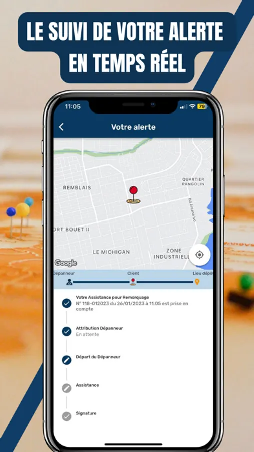 Ainsi en cas de remorquage, votre véhicule est acheminé jusqu'au lieu indiqué (Domicile, Garage ou chez l'un de nos partenaires) lors de votre lancement d'alerte assistance.
